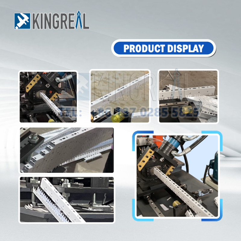A máquina de perfilagem KINGREAL para suportes de forro defletor é especialmente projetada para a produção de suportes para forro defletor, normalmente utilizados em instalações desse tipo. Geralmente consiste em um equipamento de alimentação 2 em 1, prensas de puncionamento de alta velocidade e máquina de moldagem.