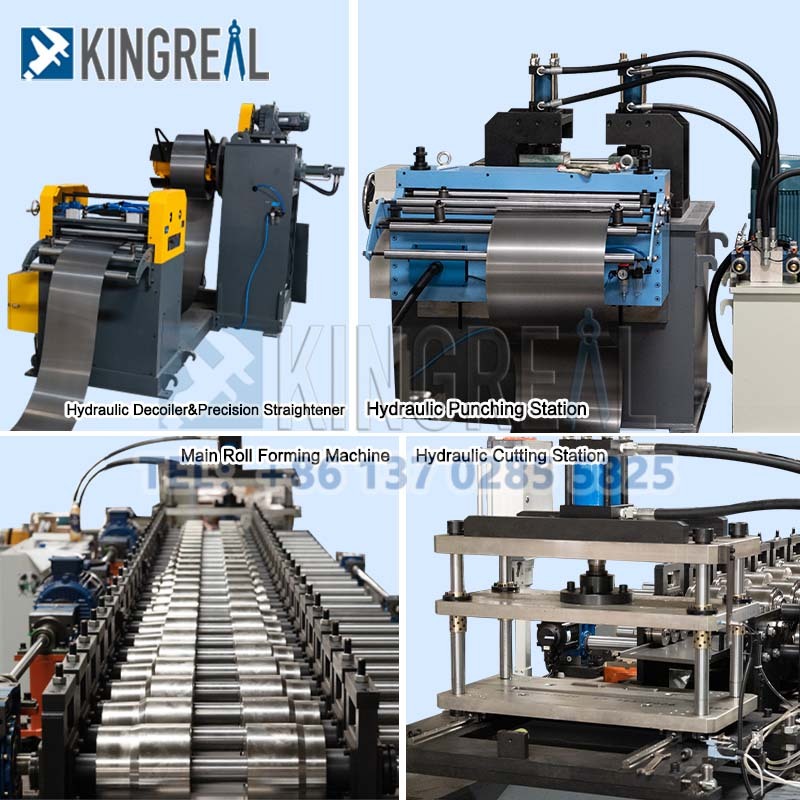 A utilização de equipamentos para fabricação de painéis de prateleiras, que proporcionam baixo custo de produção, alta eficiência e materiais ecologicamente corretos, pode ser combinada com as necessidades de produção para a fabricação de equipamentos de produção automatizados, economizando mão de obra e tornando as empresas mais competitivas no acirrado mercado. Os equipamentos para prateleiras da KINGREAL são compostos por: descarregador, nivelador, alimentador, puncionador, máquina de conformação, cortador de comprimento fixo, plataforma de recebimento, caixa de controle elétrico (controle PLC), etc.